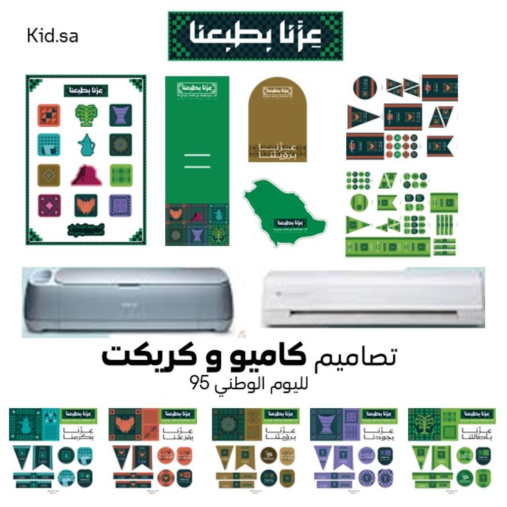 تصاميم اليوم الوطني السعودي 95 – شعار "عزّنا بطبعنا" – ملفات PNG عالية الدقة لمكاين كريكت وكاميو