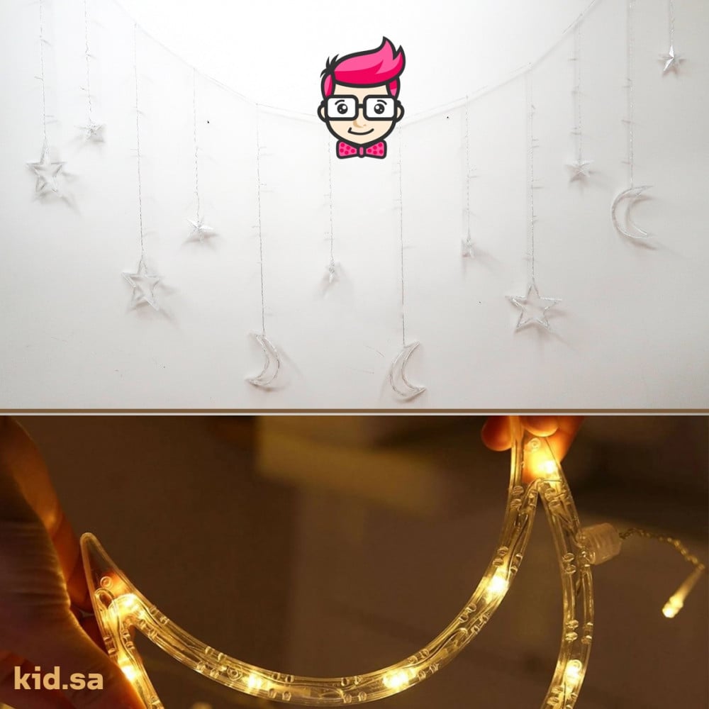 تتميز هذه الإضاءة بأشكال النجوم والأهلة التي تتوزع بها الإضاءات الصغيرة والناعمة، بلونها الذهبي الذي سيبدو رائعاً جداً خاصة في ليالي رمضان.